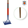 Râteau désherbeur INOVEX . Cet outil emmanché bois de 1m50, certifié PEFC avec une finition verni, est constitué d'une tête munie de 5 grndes dents en acier de 20,5cm de largeur de travail, ayant la particularité d’être vu de loin sur les chantiers de jour comme de nuit avec son manche de couleur orange et sa bande réfléchissante pour plus de sécurité.
